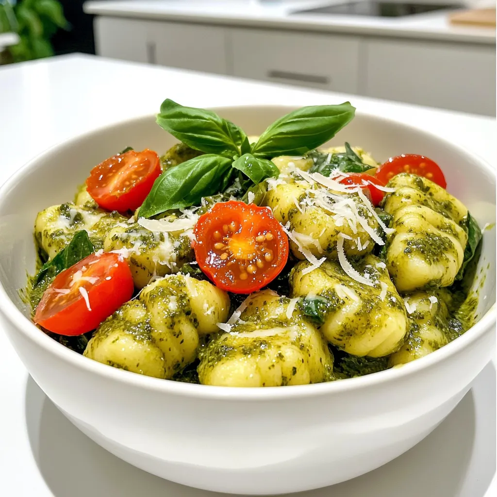 Serviere die cremigen Pesto-Gnocchi in tiefen Tellern. Garniere sie mit frischen Basilikumblättern. Ein zusätzlicher Hauch von geriebenem Parmesan macht das Gericht noch besser. Ein kleiner Spritzer Olivenöl obenauf rundet das Gericht perfekt ab.