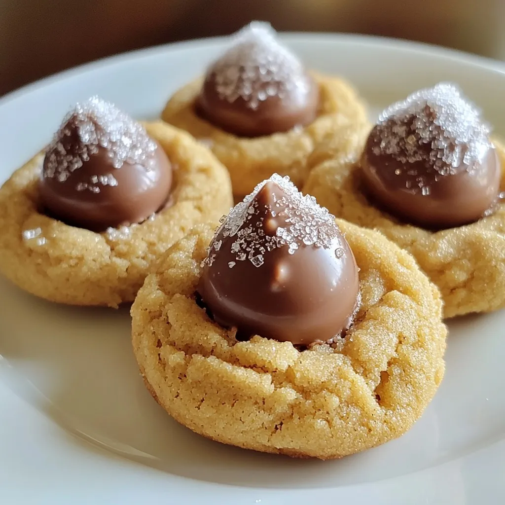 Leckere Kekse mit cremiger Erdnussbutter und Schokoladenkuss.