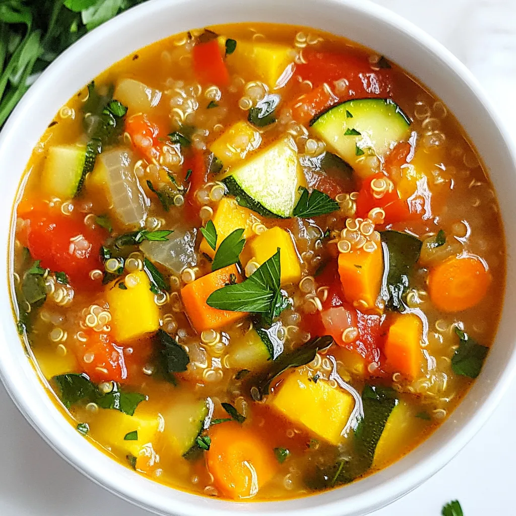 1. Gesunde Zutaten: Die Kombination aus Quinoa und frischem Gemüse macht diese Suppe nährstoffreich und sättigend.