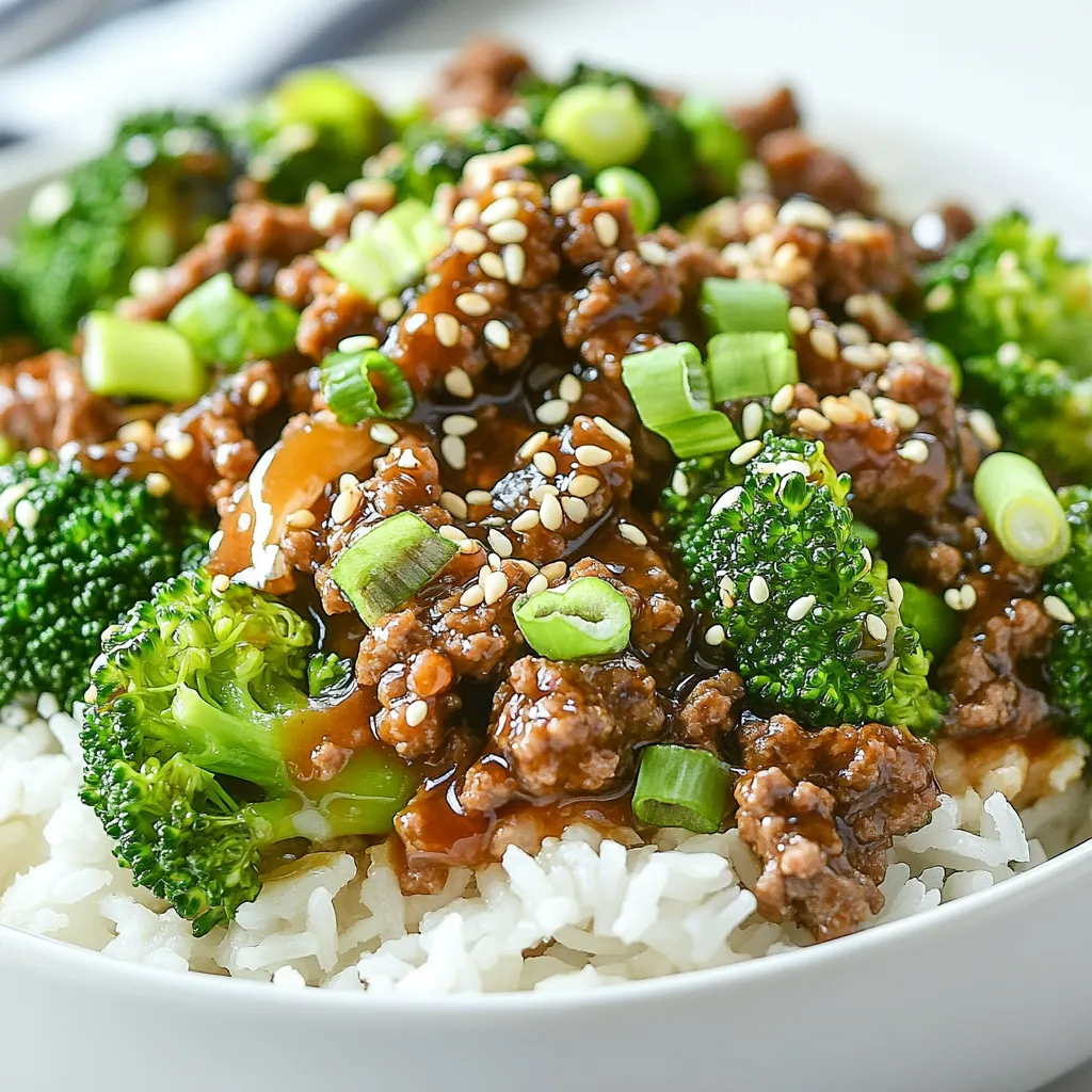 Ein köstliches Gericht mit Rinderhackfleisch und Brokkoli, perfekt serviert mit Reis oder Quinoa.