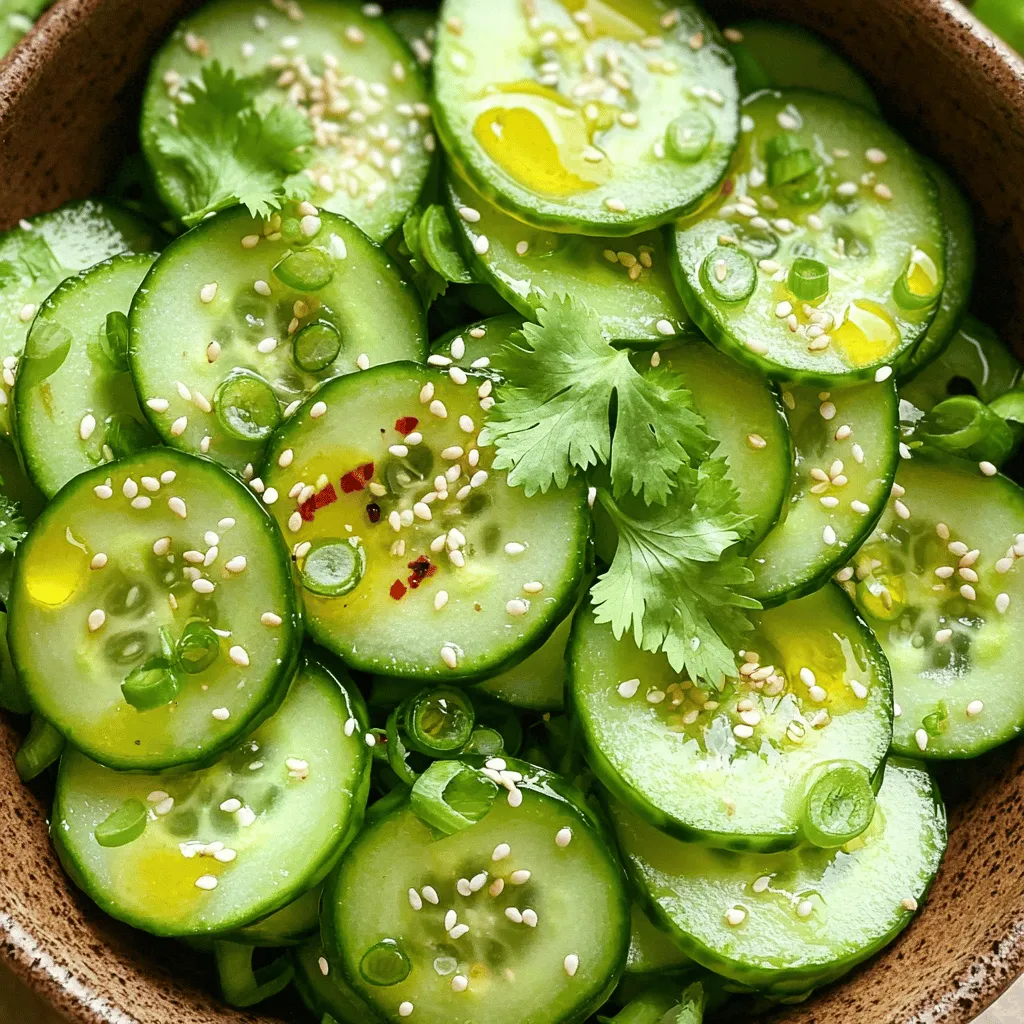 – Ansprechende Serviermethoden: Serviere den Salat in schönen, klaren Gläsern oder Schalen. Das hebt die lebendige Farbe der Gurken hervor. Du kannst auch einige Sesamsamen oben drauf streuen, um das Aussehen zu verbessern.
