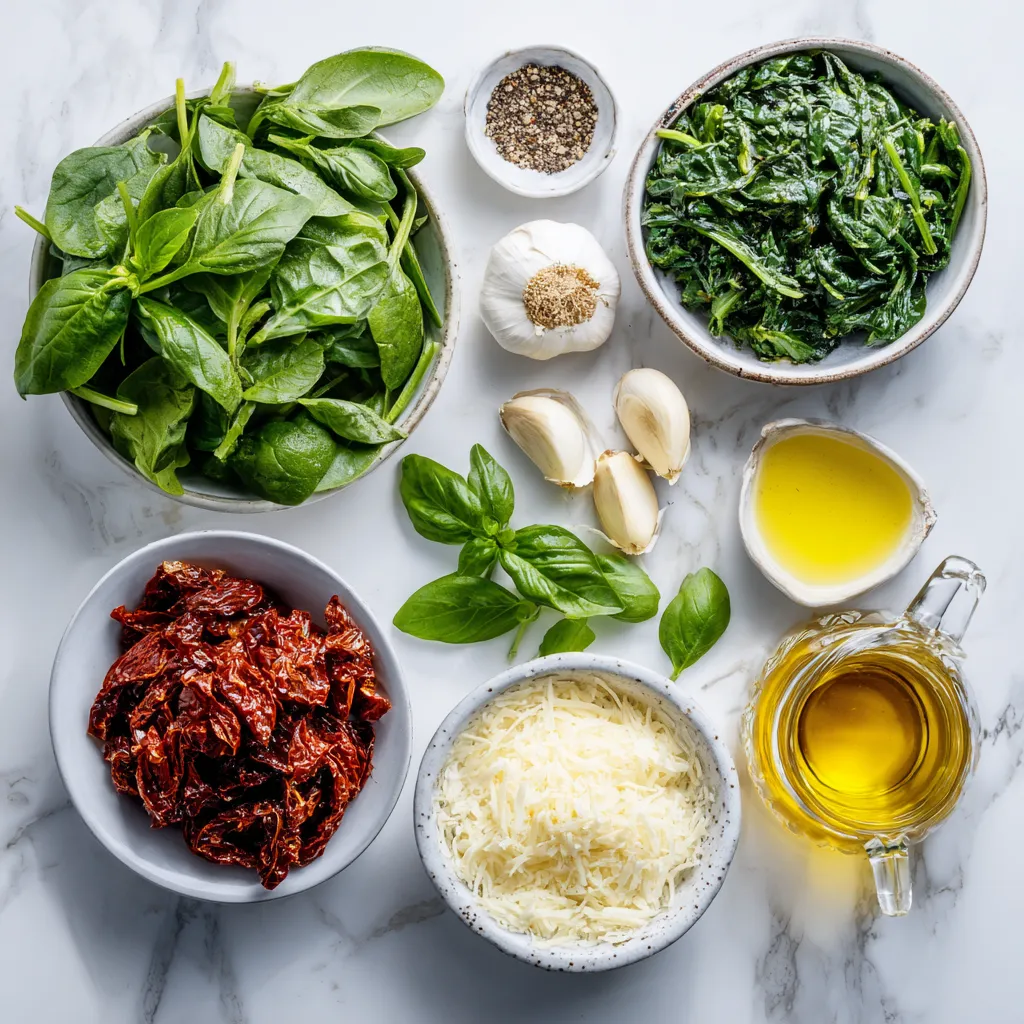 Die Hauptzutaten bilden die Basis für das Gericht. Hähnchenbrustfilets sind saftig und leicht zubereitet. Sie nehmen alle Aromen gut auf. Sonnentrocknete Tomaten bringen eine süße und herzhafte Note. Frischer Spinat fügt Farbe und Nährstoffe hinzu.