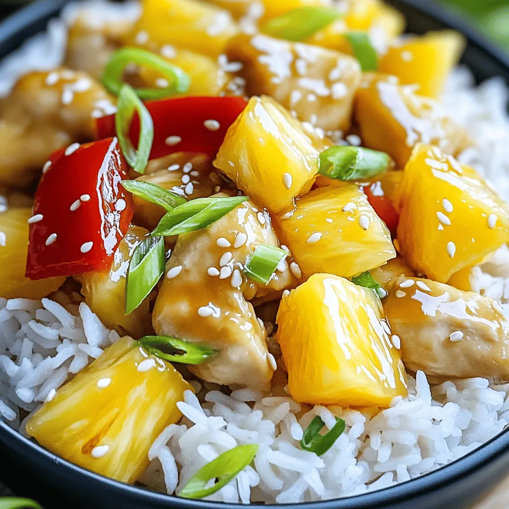 Serviere das Ananas-Hühnchen mit fluffigem Jasminreis. Das passt perfekt zu den Aromen. Du kannst auch gedämpftes Gemüse dazugeben. Brokkoli oder grüne Bohnen sind gute Optionen. Als Garnitur eignen sich Frühlingszwiebeln und Sesamsamen. Diese bringen Farbe und Crunch. Für einen besonderen Touch, serviere das Gericht in einer Ananasschale. Es sieht toll aus und schmeckt frisch!