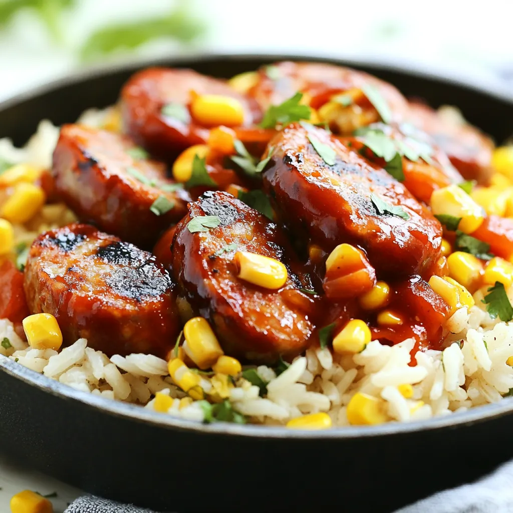 Süßer und Würziger BBQ Würstchen-Reis-Pfanne