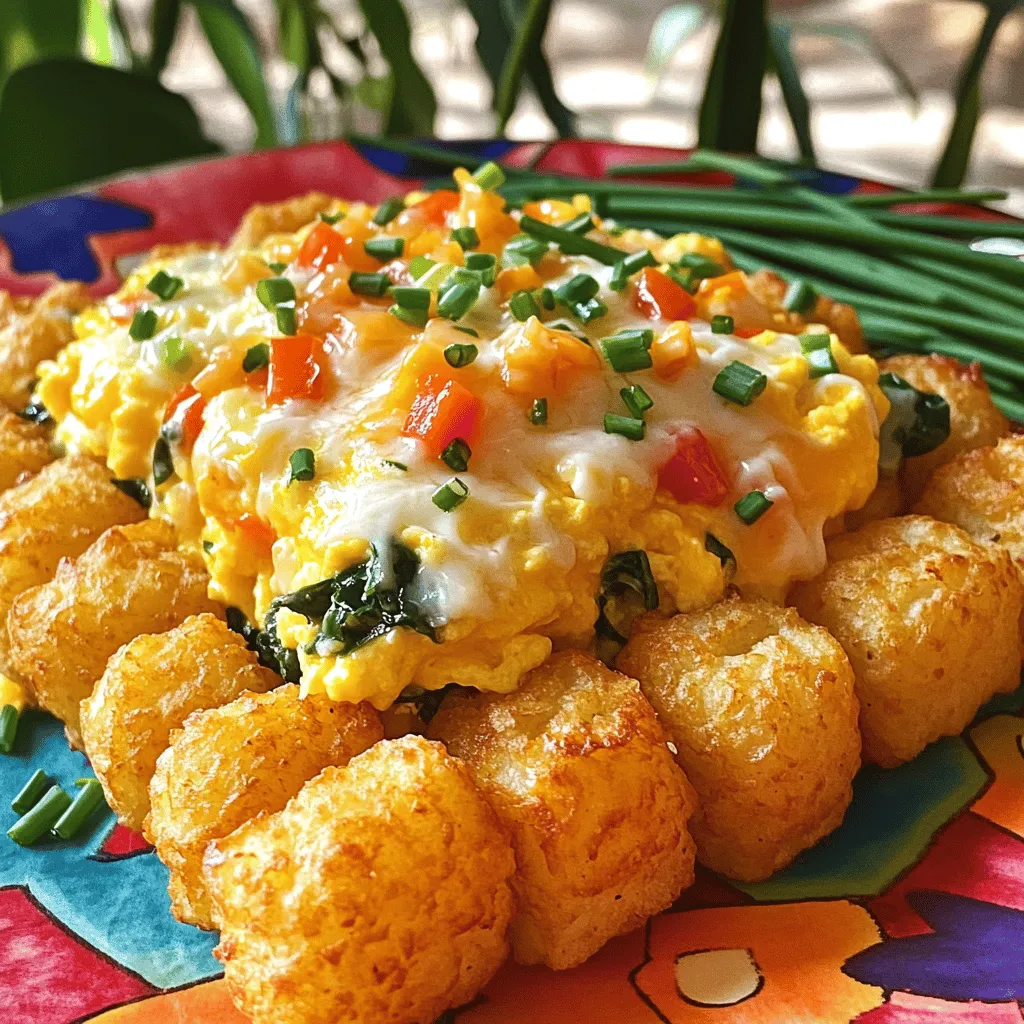 Die Tater Tots sind der Hauptbestandteil. Sie bringen eine knusprige Textur. Du kannst gefrorene Tater Tots für mehr Bequemlichkeit nutzen. Die Eier und Milch bilden eine cremige Basis. Diese Mischung sorgt dafür, dass alles gut zusammenhält.