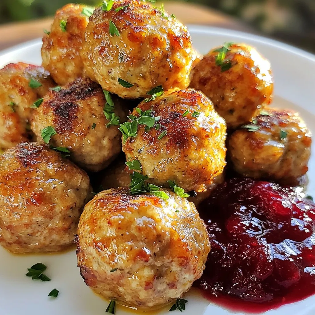 Leckere und saftige Fleischbällchen aus gemahlenem Truthahn, perfekt für das Thanksgiving-Fest.