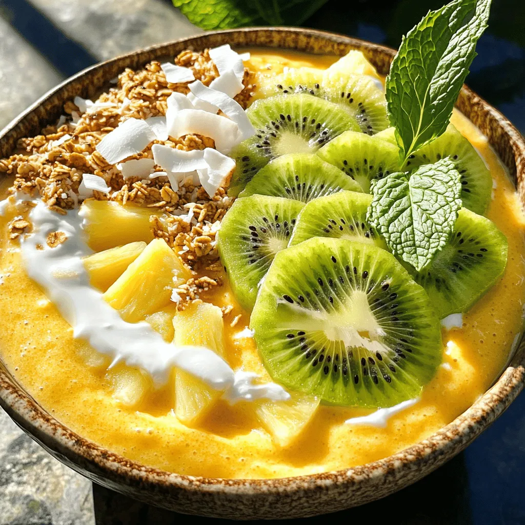 Erlebe den tropischen Genuss mit dieser köstlichen dicken Smoothie-Schüssel! Diese einfache Rezeptur kombiniert gefrorene Banane, frische Ananas und cremige Kokosmilch zu einem perfekten Frühstück oder Snack. Mit Haferflocken, Chiasamen und deinen Lieblings-Toppings wird dieser gesunde Leckerbissen zum Highlight des Tages! Klicke durch, um das vollständige Rezept zu entdecken und dir einen Hauch von tropischem Urlaub zu sichern!