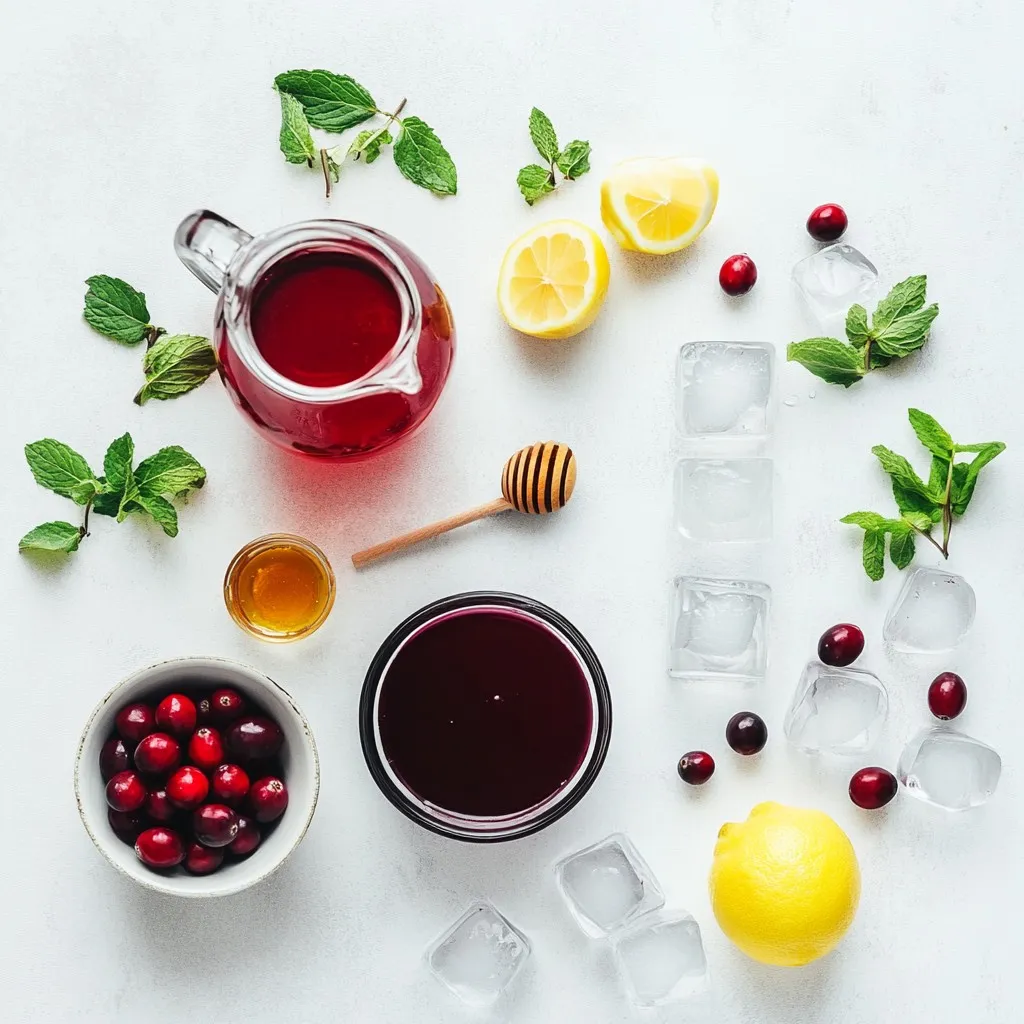 Frische Cranberries sind wichtig für den Look und bringen eine schöne Farbe. Honig oder Agavendicksaft kann den Drink süßer machen. Minzblätter bringen einen frischen Duft und eine schöne Dekoration.