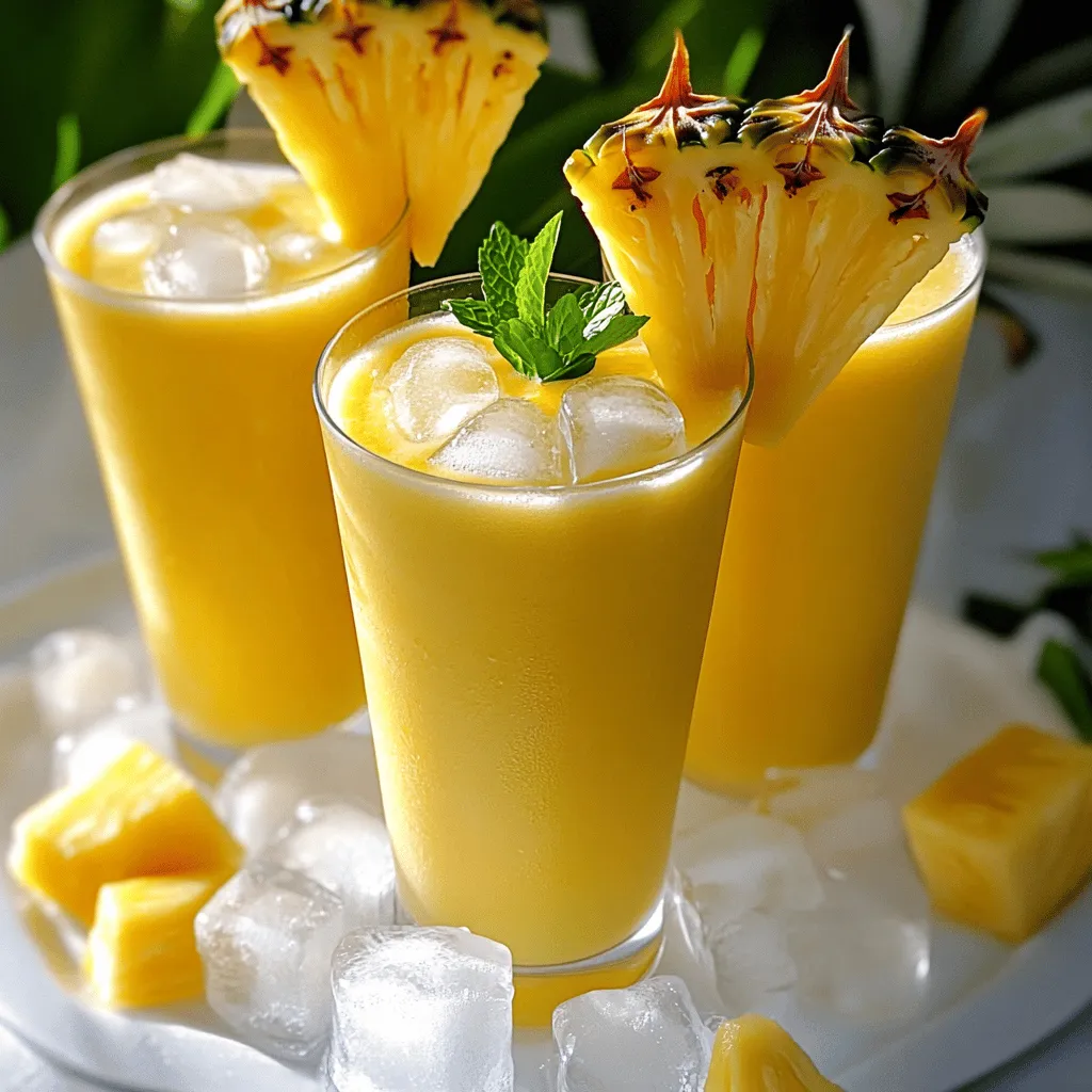![- 2 Tassen frische Ananasstücke - 1 Tasse Kokoswasser Die Hauptzutaten sind einfach und frisch. Ananasstücke machen das Getränk süß und lecker. Wählen Sie reife Ananas für den besten Geschmack. Kokoswasser bringt eine leichte, tropische Note. Diese beiden Zutaten sind perfekt für eine schnelle Erfrischung. - Eismaschine oder Mixer Ein Mixer ist eine gute Wahl für diese Mischung. Er hilft, die Ananas und das Kokoswasser gut zu vermengen. Eine Eismaschine kann auch verwendet werden, wenn Sie eine gefrorene Version wollen. Das macht das Getränk noch erfrischender. Wenn Sie die Zutaten gut mischen, erhalten Sie eine schöne, glatte Konsistenz. Die Zubereitung ist wirklich schnell und einfach. Mit diesem Rezept können Sie in nur 5 Minuten einen köstlichen Two Ingredient Pineapple Refresher genießen. Probieren Sie es aus und nutzen Sie die [Full Recipe] für weitere Details! Zuerst schneide ich die frische Ananas in mundgerechte Stücke. Das macht das Mixen einfach. Stelle sicher, dass du alle Kernstücke entfernst. Diese sind hart und nicht lecker. Mit einem scharfen Messer geht das schnell. Jetzt gebe ich die Ananasstücke und das Kokoswasser in den Mixer. Es ist wichtig, alles gleichmäßig zu verteilen. Ich mixe die Zutaten auf hoher Stufe. In etwa 30 bis 45 Sekunden wird die Mischung glatt und lecker. Um den Geschmack zu verbessern, füge ich einen Teelöffel Honig oder Agavendicksaft hinzu. Das macht das Getränk süßer. Ich mixe dann noch einmal für 10 Sekunden. So vermischst du die Süße gut. Für die vollständige Anleitung und weitere Details, siehe das Rezept [Full Recipe]. Um die beste Konsistenz zu bekommen, nutzen Sie Ihren Mixer richtig. Ein starker Mixer macht das Getränk schön cremig. Mixen Sie die Ananas und das Kokoswasser schnell und kräftig. Das dauert etwa 30 bis 45 Sekunden. Wenn Sie eine dickere Textur wollen, können Sie etwas gefrorene Ananas hinzufügen. Das macht das Getränk kühler und erfrischender. Sie können auch einen Esslöffel Chiasamen oder Haferflocken hinzufügen. Diese Zutaten geben mehr Substanz und Nährstoffe. Servieren Sie den Ananas Refresher in kalten Gläsern. Fügen Sie Eiswürfel hinzu, um ihn noch erfrischender zu machen. Das Eis hält das Getränk kühl und lecker. Um Ihr Getränk schön zu dekorieren, garnieren Sie es mit einer frischen Ananasscheibe oder etwas Minze. Diese kleinen Details machen einen großen Unterschied und sehen toll aus. So wird Ihr Ananas Refresher zum Hingucker. Für die vollständige Anleitung und das Rezept schauen Sie sich das [Full Recipe] an. {{image_4}} Eine einfache Art, den Zwei Zutaten Ananas Refresher zu verändern, ist, andere Früchte hinzuzufügen. Zum Beispiel, probiere Mango oder Erdbeere. Diese Früchte bringen neue Aromen und Farben. Du kannst auch verschiedene Säfte verwenden, um den Geschmack zu variieren. Orangensaft oder Limettensaft sind tolle Optionen. Sie geben dem Getränk eine frische Note. Wenn du Gäste hast oder eine Party planst, mache deinen Refresher noch spezieller. Füge einen alkoholischen Zusatz wie Rum oder Wodka hinzu. Das macht ihn zu einem leckeren Cocktail. Für eine Familienfeier kannst du auch einen alkoholfreien Punch machen. Mische den Refresher mit Sprudelwasser oder Limonade. So erhältst du ein spritziges Getränk, das alle begeistert. Denke daran, dass diese Variationen einfach und schnell sind. Du kannst sie leicht anpassen und deinen persönlichen Stil einbringen. Experimentiere mit verschiedenen Kombinationen und finde deine Favoriten! Wenn du ein paar Reste von deinem Two Ingredient Pineapple Refresher hast, kannst du sie einfach lagern. Am besten bewahrst du den Refresher in einem luftdichten Behälter auf. So bleibt die Frische erhalten und der Geschmack bleibt gut. Du kannst ihn im Kühlschrank für bis zu zwei Tage aufbewahren. Wenn du ihn länger aufbewahren möchtest, ist das Einfrieren eine gute Option. Der Refresher bleibt im Gefrierfach bis zu drei Monate frisch. Der Two Ingredient Pineapple Refresher ist am besten, wenn du ihn frisch machst. Er schmeckt am besten innerhalb von 24 Stunden nach der Zubereitung. Nach zwei Tagen im Kühlschrank kann der Geschmack nachlassen. Wenn du ihn jedoch im Gefrierfach aufbewahrst, bleibt er länger gut. Du kannst ihn einfach herausnehmen und im Kühlschrank auftauen, wenn du bereit bist, ihn zu genießen. So hast du immer eine kühle Ananas-Erfrischung zur Hand! Um den Two Ingredient Pineapple Refresher vegan zu machen, wählen Sie pflanzliche Süßungsmittel. Zum Beispiel können Sie Agavendicksaft verwenden, um die Süße anzupassen. Dies ist eine großartige Option, da Agavendicksaft aus der Agave gewonnen wird und keine tierischen Produkte enthält. Es gibt auch andere pflanzliche Süßstoffe wie Stevia oder Kokosblütenzucker. Diese Optionen sind leicht erhältlich und bieten alternative Süße ohne tierische Bestandteile. Ja, Sie können den Two Ingredient Pineapple Refresher im Voraus zubereiten. Mischen Sie die Ananas und das Kokoswasser und füllen Sie die Mischung in einen Behälter. Stellen Sie sicher, dass der Behälter gut verschlossen ist. Sie können ihn dann im Kühlschrank lagern. Der Refresher bleibt frisch für etwa zwei Tage. Vor dem Servieren einfach gut schütteln oder umrühren. Ja, der Two Ingredient Pineapple Refresher ist gesund. Ananas enthält viele Vitamine, wie Vitamin C und B-Vitamine. Diese Vitamine stärken das Immunsystem und tragen zur Gesundheit bei. Kokoswasser ist ebenfalls nahrhaft. Es ist reich an Elektrolyten und hydratisiert den Körper gut. Diese Kombination ist nicht nur erfrischend, sondern auch nahrhaft und spritzig. Der Two Ingredient Pineapple Refresher ist einfach und lecker. Du brauchst nur Ananasstücke und Kokoswasser. Mit ein paar zusätzlichen Zutaten kannst du deinen Drink verfeinern. Denke daran, die richtige Konsistenz zu erreichen und kreativ mit verschiedenen Früchten zu sein. Wenn du Reste hast, bewahre sie im Kühlschrank oder Gefrierfach